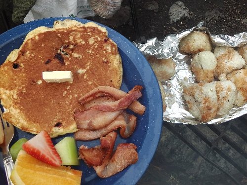 パンケーキには 前日摘んだブルーベリーが入っている。 |