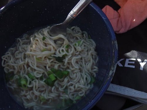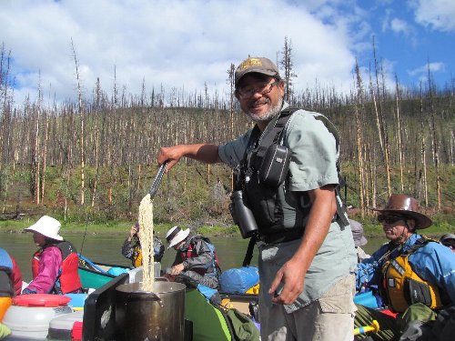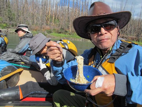 ガイドのカツちゃんが 船上ラーメンをクッキング |