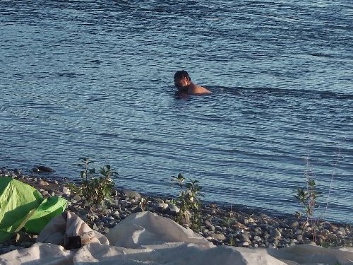 予定のキャンプ地に先客がいて 次の次の10kmほど下流のサイトまで漕ぐ。