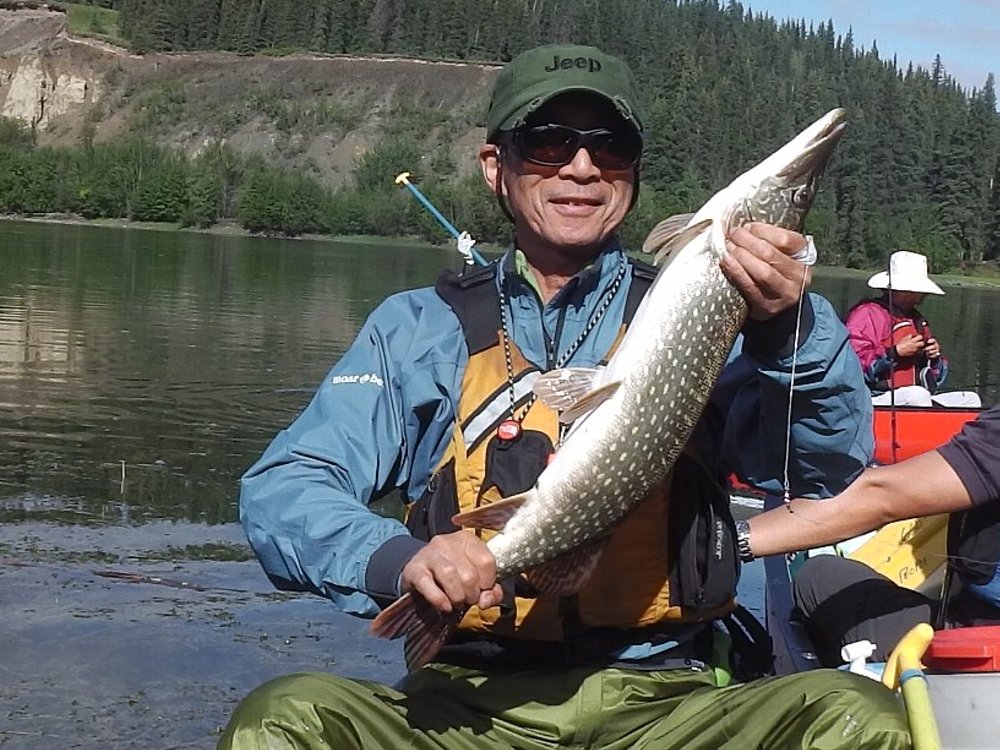 やった!昨日より大物だ!ハルはこの後パイクマスターと ガイドのカツに呼ばれご満悦。 昨日味わったので リリースする。 |