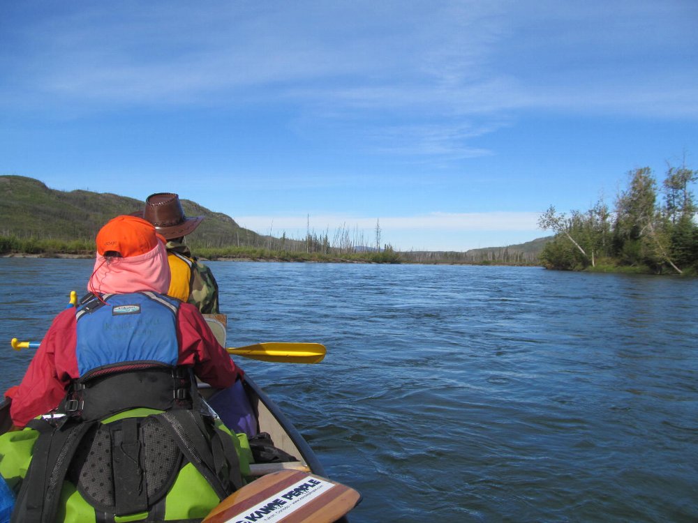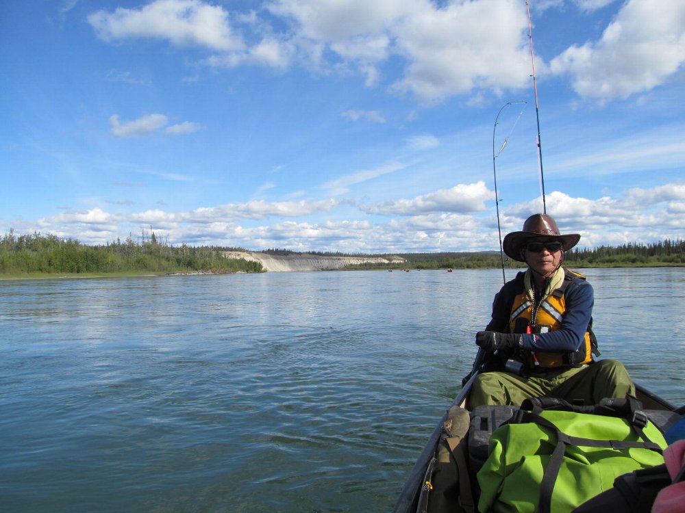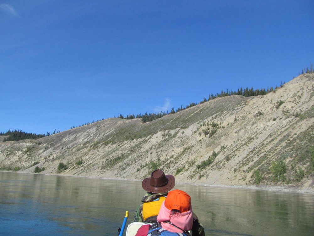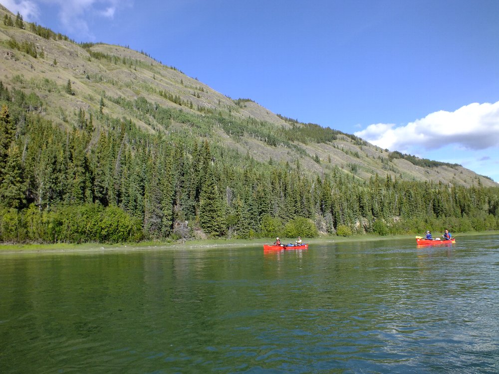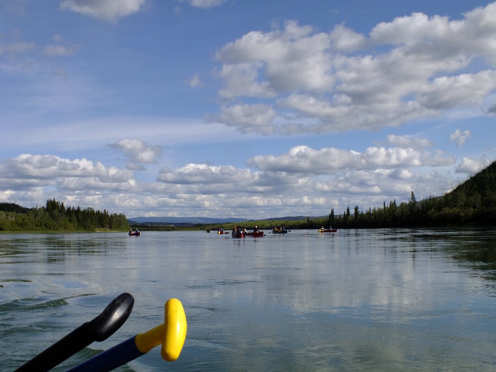 手にマメができた・・・ゆったりユーコン楽しみたい・・ と、ガイドのカツちゃんの3人艇に乗り換える。