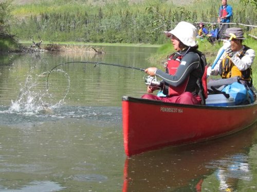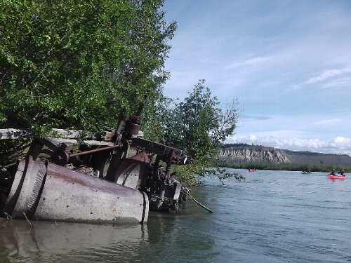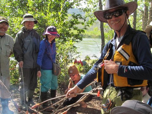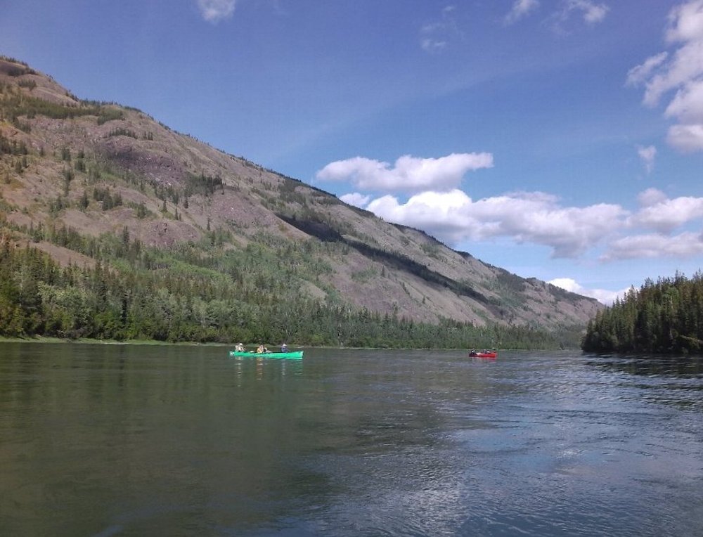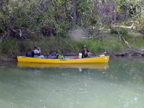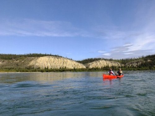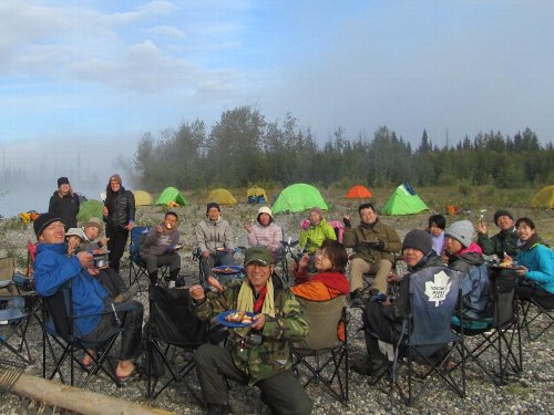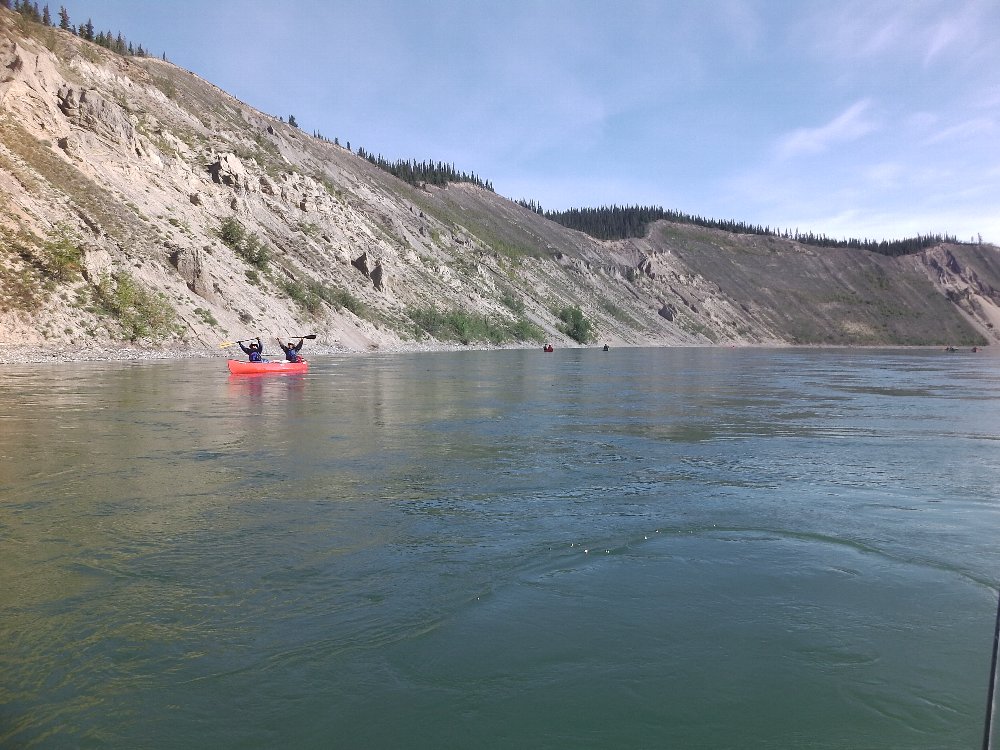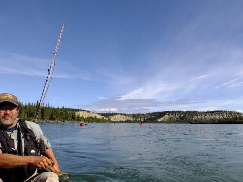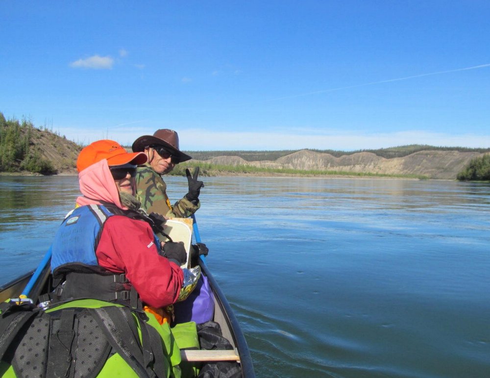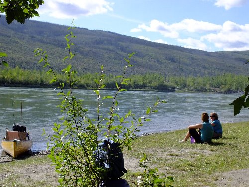 手にマメができた・・・ゆったりユーコン楽しみたい・・ と、ガイドのカツちゃんの3人艇に乗り換える。
