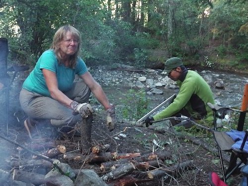 ハルはアリーの助手。 せっせと薪作り |