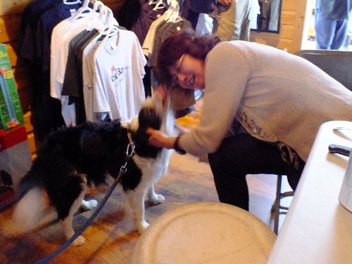 野田氏の愛犬2匹とも会う。 アレックスは、画面から離れ写真にはいらず ハナと遊ぶ。 |