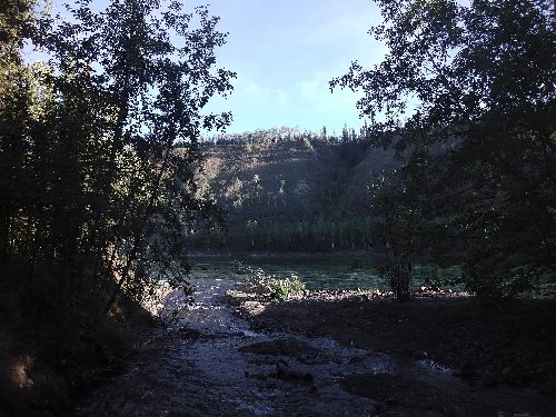 川の対岸は 山火事の跡 |