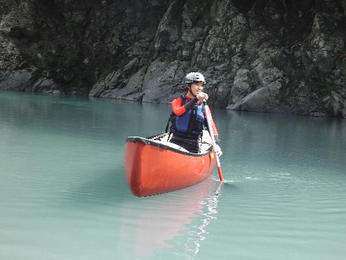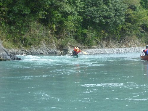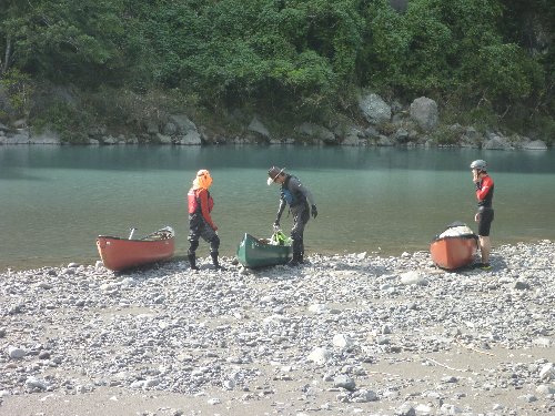 はるカミは、何事もなかった様に座っているが、 私は艇の外で、水の中に・・・・泳いで浅瀬に着いた処 |