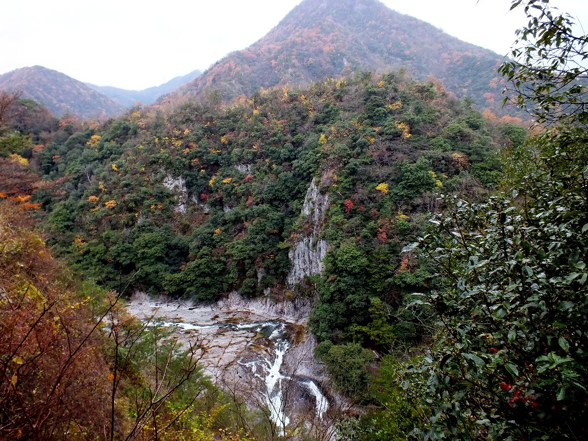 紅葉、渓谷、眼下には滝、 という絶景を見ることができた。