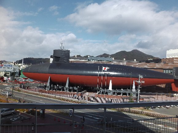 潜水艦あきしおは、全長76m、重さ約2000t、1986から2004年まで、実際に海上自衛隊で使用されていたものです。