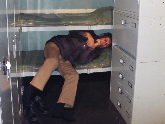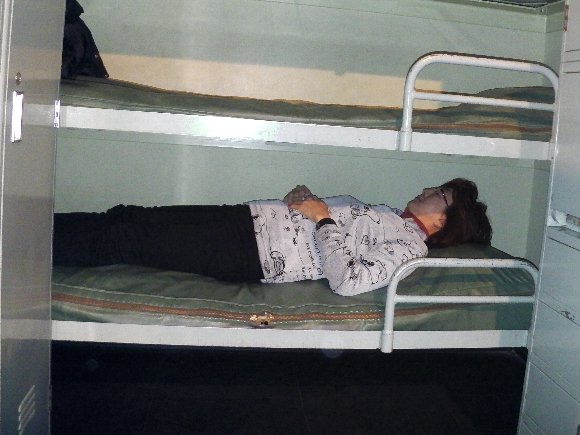乗組員のベッドに寝てみる、 出入りは狭く大変なのだが、 |