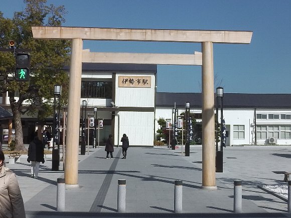 伊勢市駅には鳥居がある |