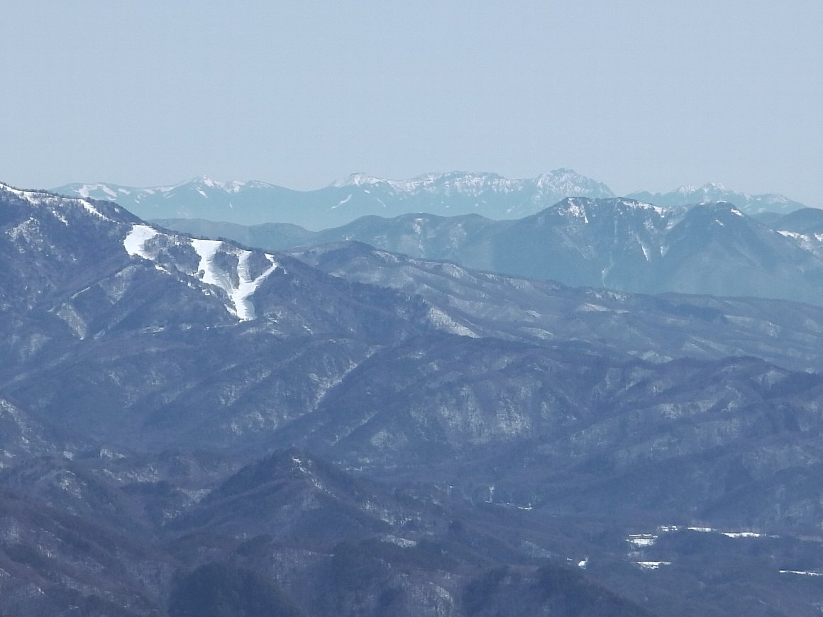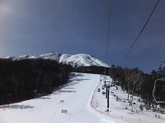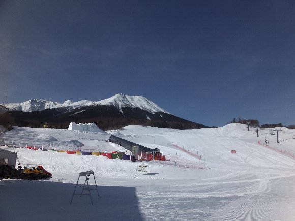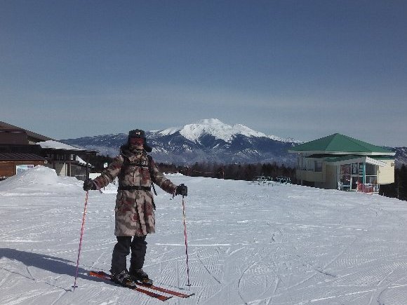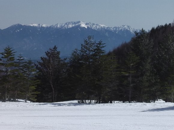木曽ふくしまスキー場の先に、昨年何度も登った、なつかしい八ヶ岳連峰がはっきりと見える |