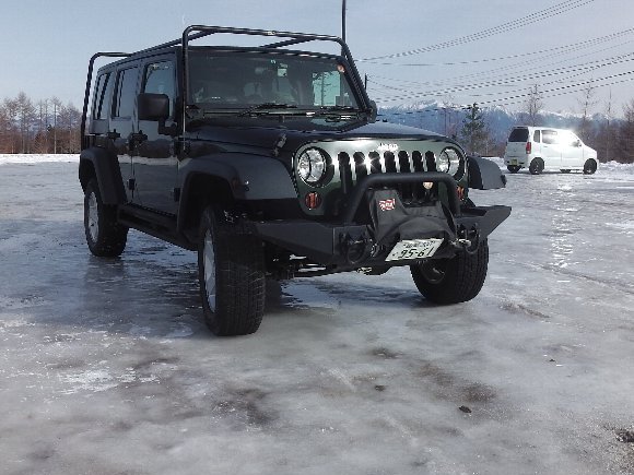 駐車位置は、駐車場の真ん中、氷の上。
