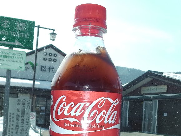 帰り道、車内に置いていたコーラが凍っていた。 日に当てて解かして飲む。 |