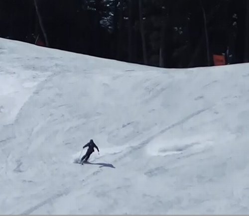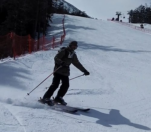 ![]() レッスンでも滑った斜面を ターンしたら・・・ |