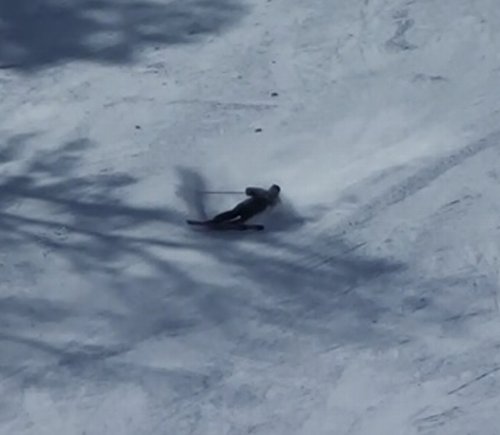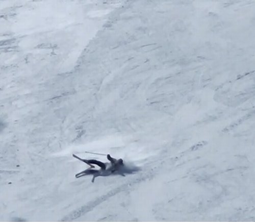 しかし滑り始めた直後に転倒・・・・・斜面を滑り落ちる。