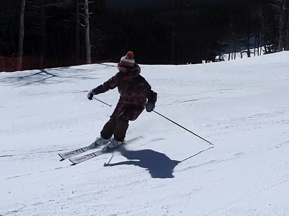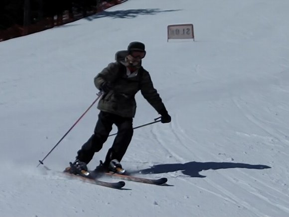 ![]() 急斜面でのショートターン |