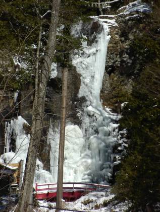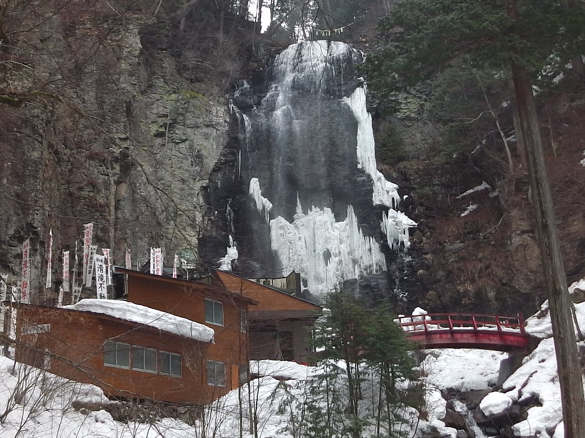 滝壺まで行くが、 氷はだいぶ溶けてきている |