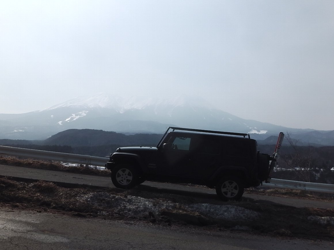 開田高原マイア 滑り納め 2014.03,16-17 3月17日 いつもの場所で、道肩の雪はすっかりなくなり 御嶽山には春霞 車の向きが逆なのは、帰り道だから |