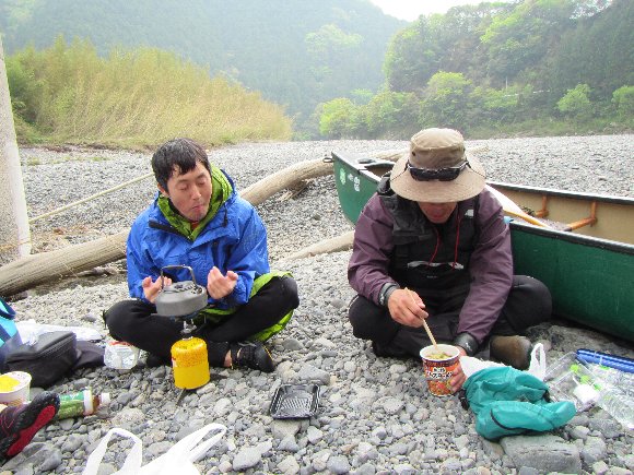 雨が降りそうな空になってきたので、笹合橋の下で早めに昼食
