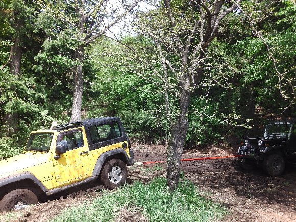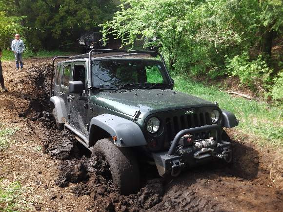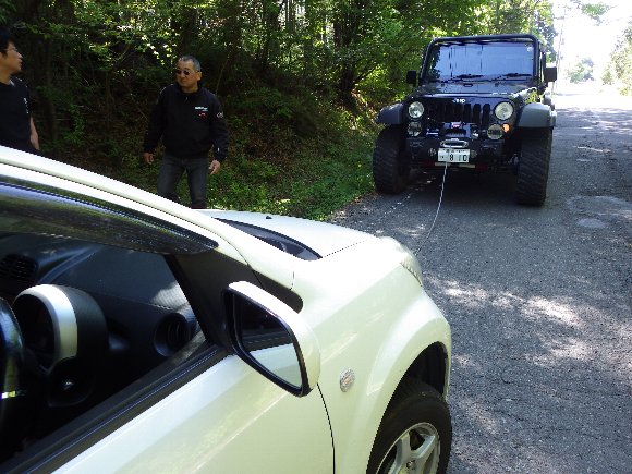 TERU-JK さんのウィンチ、そして、私がこの車の運転席に座り、救出したのである。