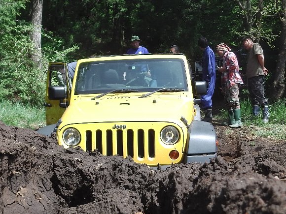 しかし、この乾いたような泥道が曲者で、タイヤはズブズブと沈み込み、次から次と、スタックの続発。
