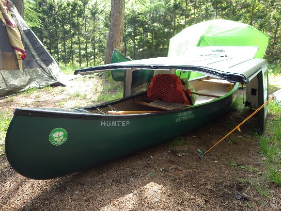 カヌー積載用のクロスバーに木々が たびたび引っかかる |