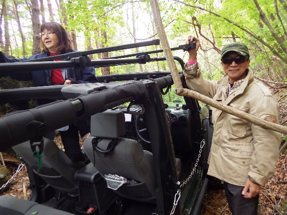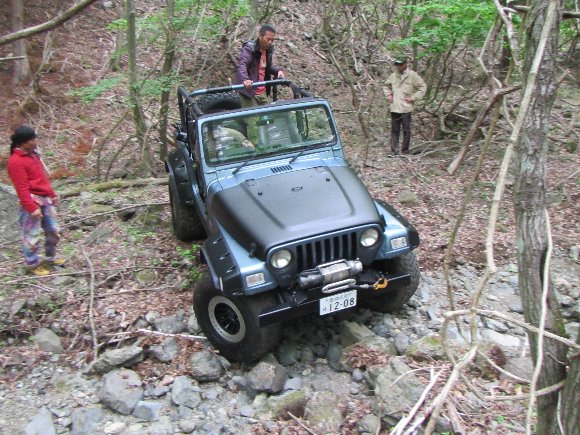 私のアンリミスポーツ、 てらけんさんのアンリミルビコン、 TERU−TJKさんのTJ 、Georgeさんの三菱Jeep オープンJeep 4台で近くの林道へ。