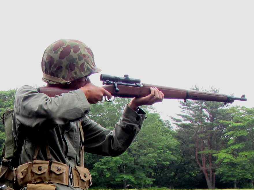 フルオートのB.A.R. トンプソンも持ってはいたが、 やはり歩兵はライフルでしょう。