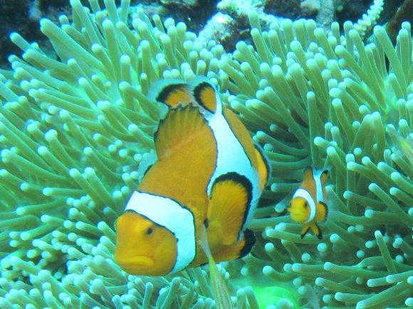 クマノミの夫婦 大きい方がメス |