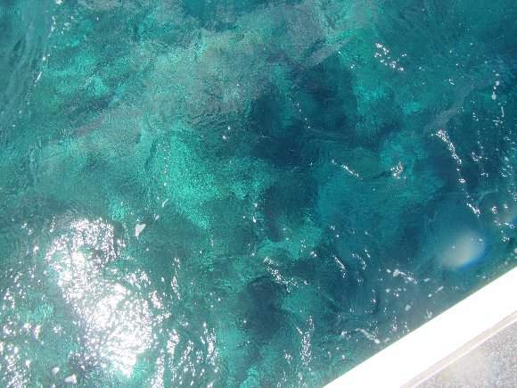 船の上から海底まで見える透明度の良さ |