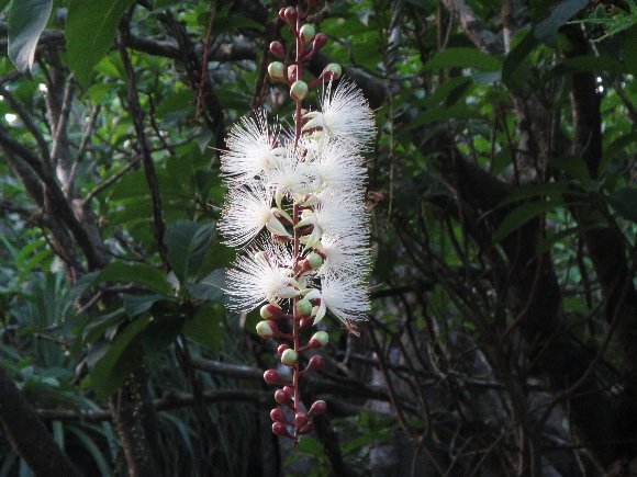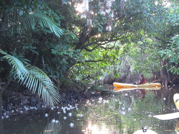 支流に漕ぎ入ると、早速サガリバナが迎えてくれる。