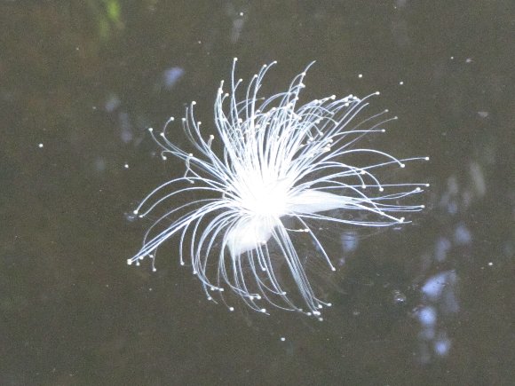 音のする方を見ると、川面に落ちたばかりのサガリバナ |