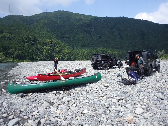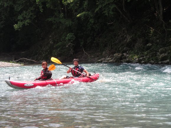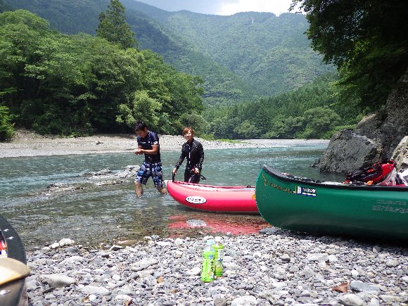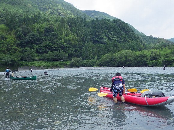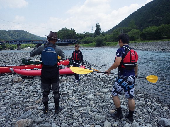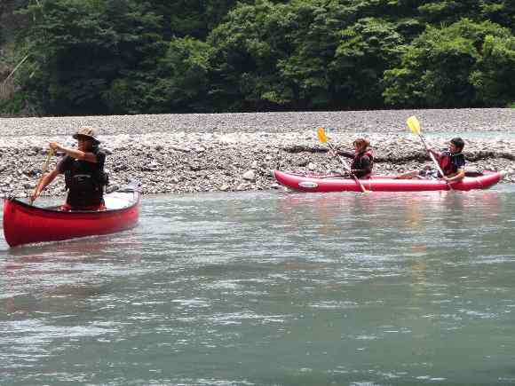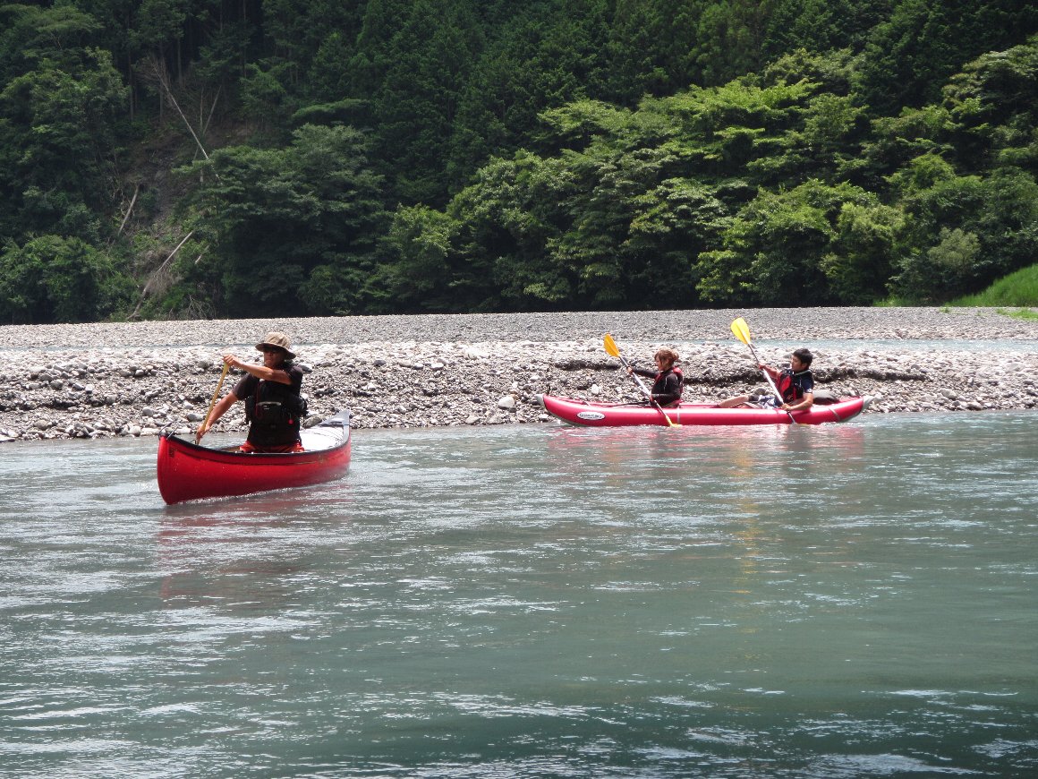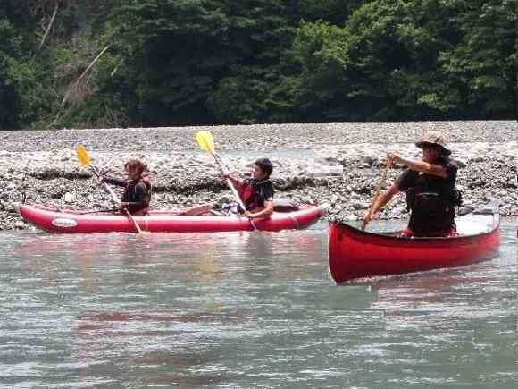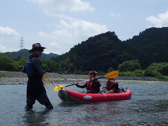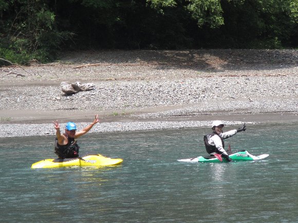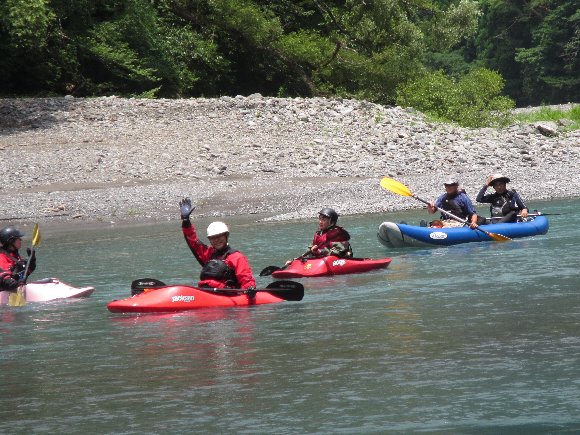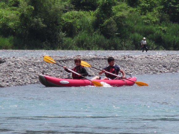気田川 2014.07.21 「漕いで漕いで、漕ぎまくれぇ〜!」 「教官殿〜、もう 漕げません〜」 |