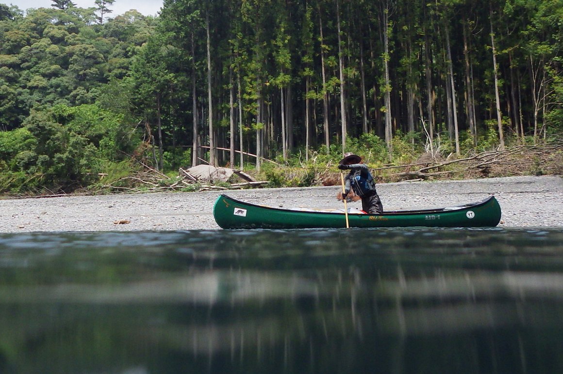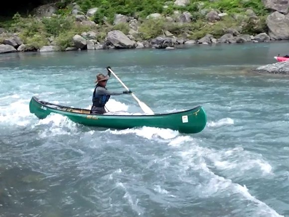 ![]() 送電線の瀬での漕ぎ上がり |