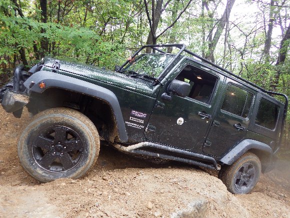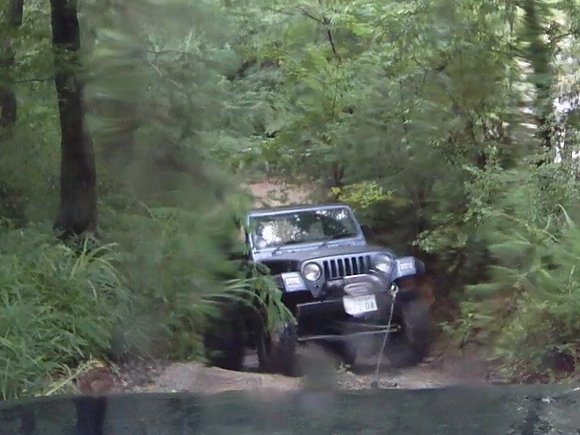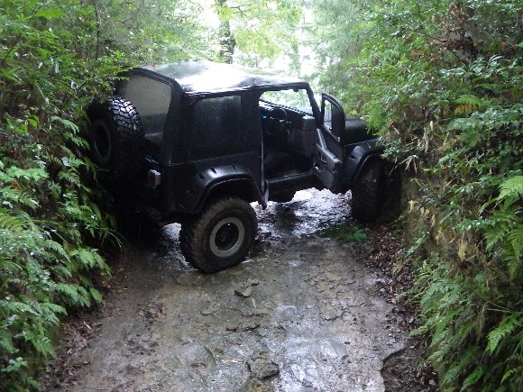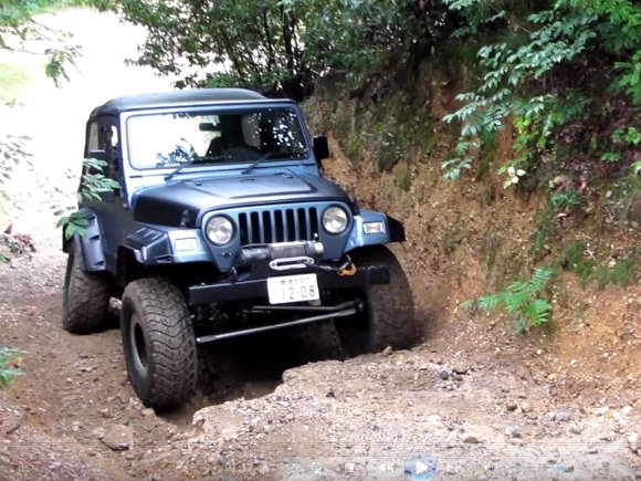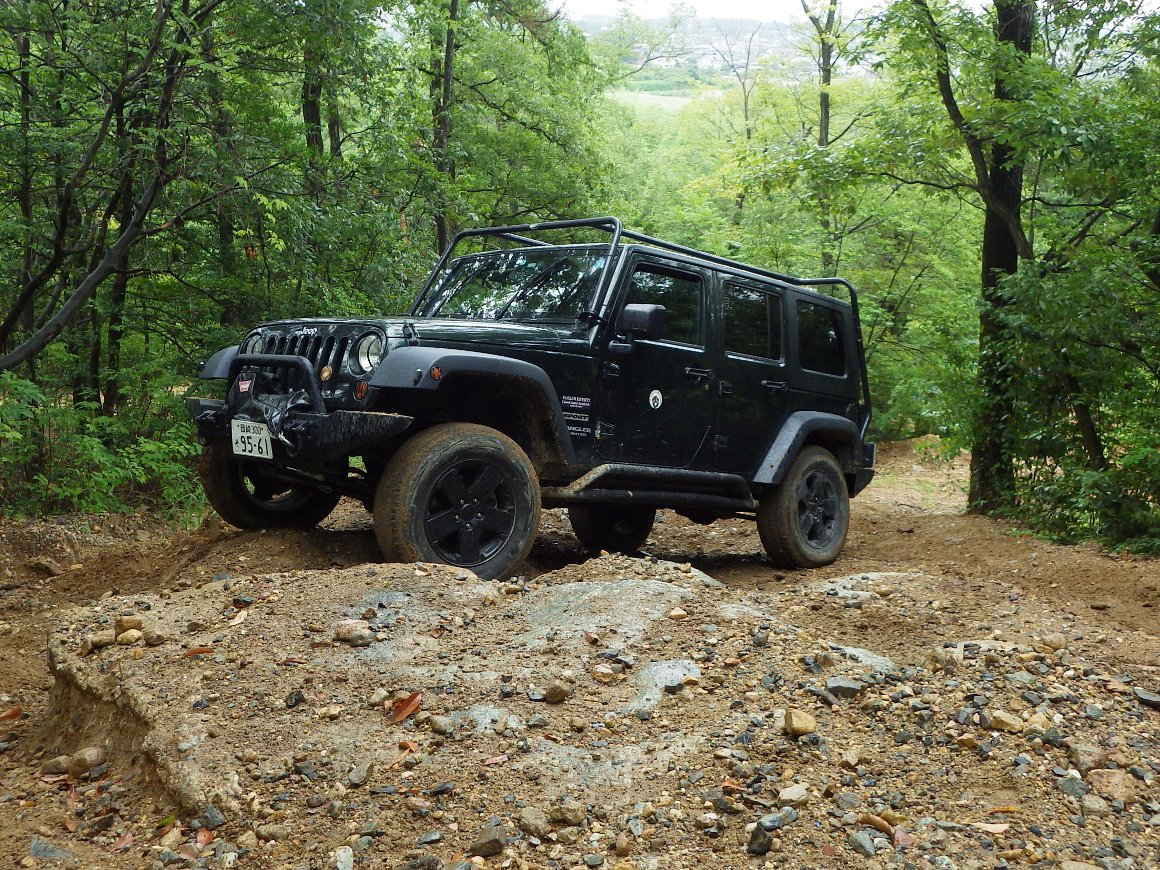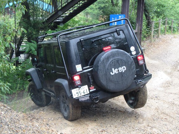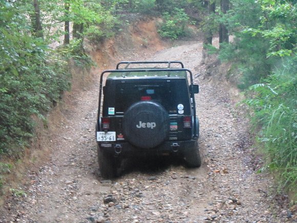 直登路30度の最上部で濡れた路面でスリップ 横向きになってしまった TJ |