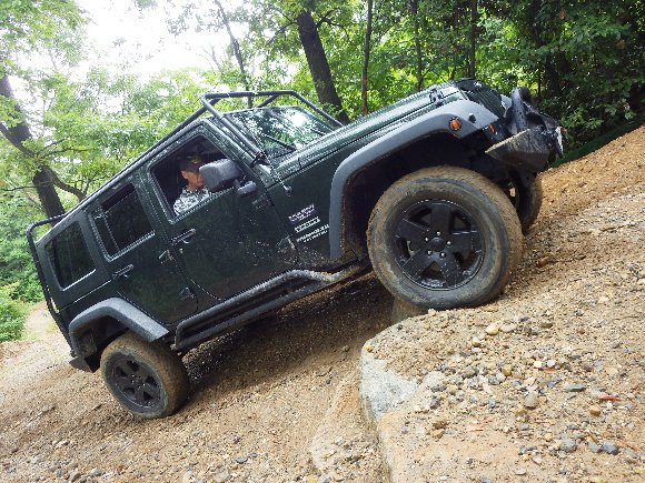 昼食後、岩石登坂路20度などで遊び、
