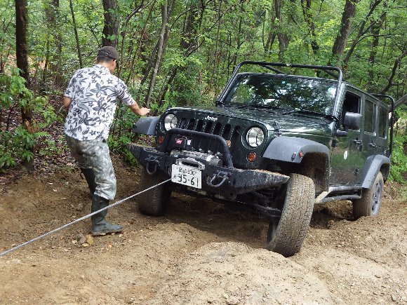 ![]() 坂の上から、 ウィンチで引っ張り レスキュー |