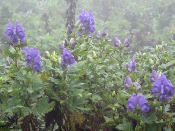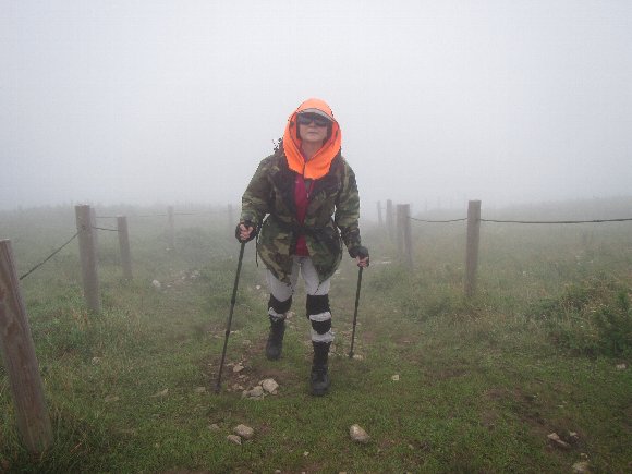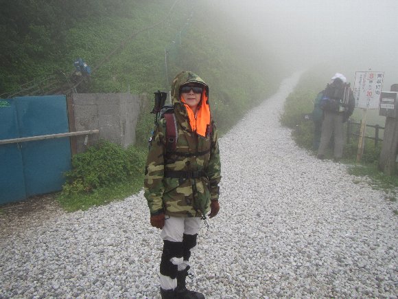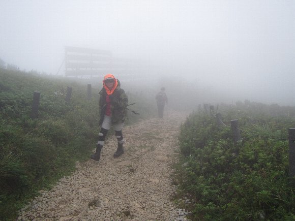 山頂は霧が深く、風が強い。