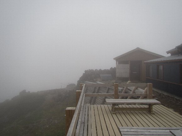 五の池小屋にチェックイン、部屋でしばし休憩していたら、ガスが晴れてきた。