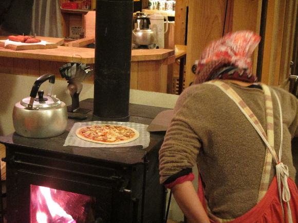 ![]() 薪スローブで焼く ピザ |
