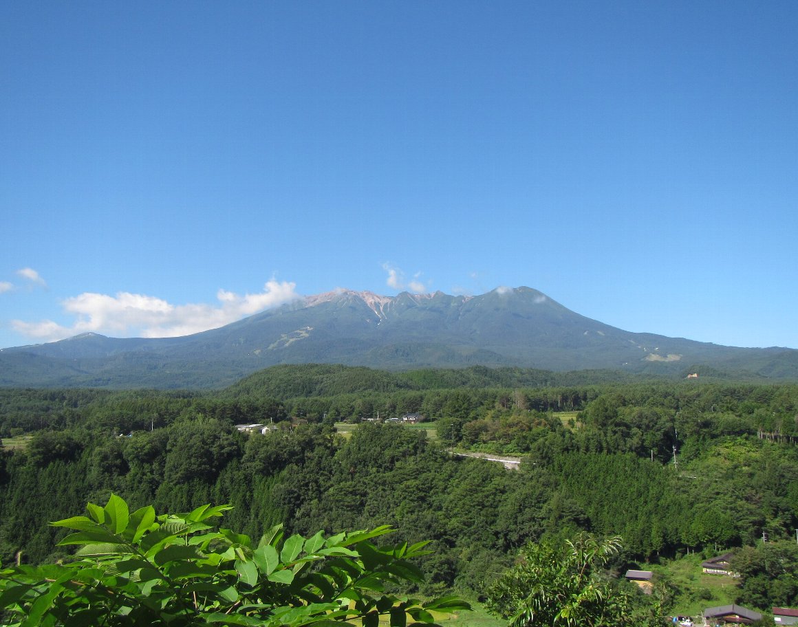 いつも、開田マイアスキー場へ行く時の撮影ポイントで 雪のない御獄山を撮り 家路に着く。