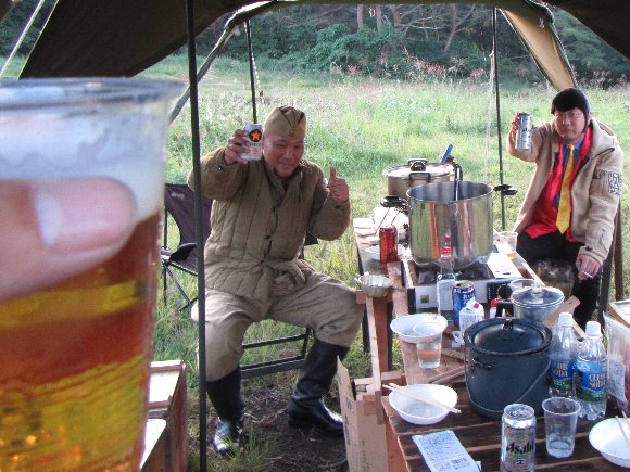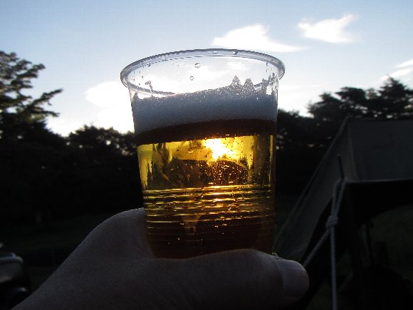 まずは、お疲れビールを グイッと飲み、 テント設営。