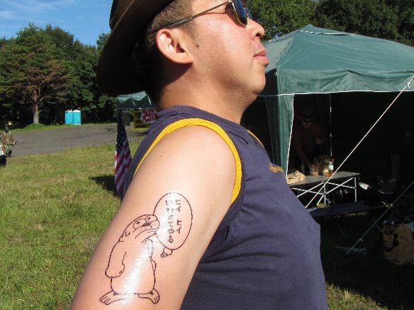この入れ墨は、アホカリ参加時は拒否された、 とか(笑) |
