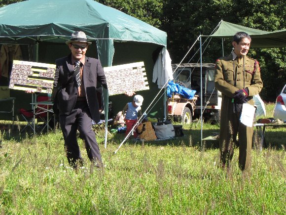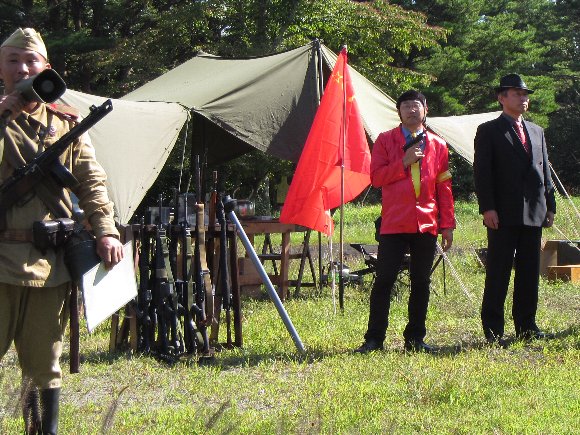 開会挨拶 主催のシルバーさん スーツ姿の怪しい人物も・・・。 |