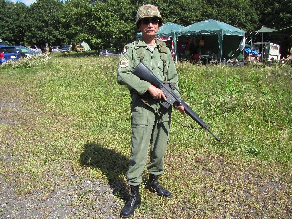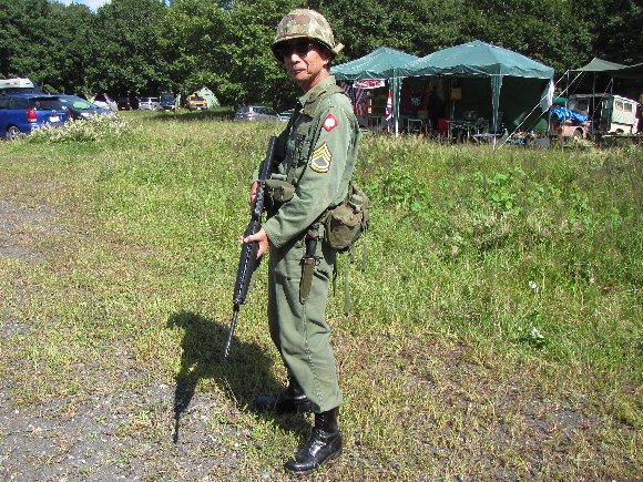 慌てて装備を車載した処、ヘルメットをベトナム戦陸軍用と二次戦海兵用とを間違ってしまったのであります。