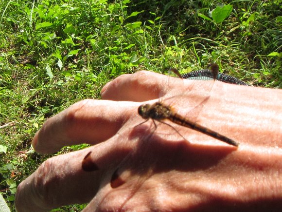 手にトンボがとまる |