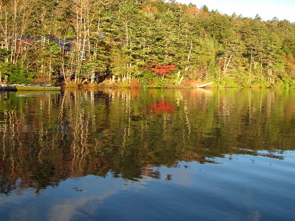 湖面に映る 紅葉と青空 |