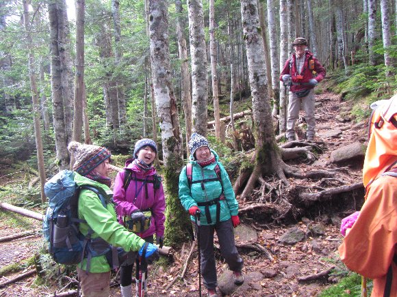 12時すぎに、高見石への道を降りていくが、はるカミが膝が痛いとペースを落として歩く。