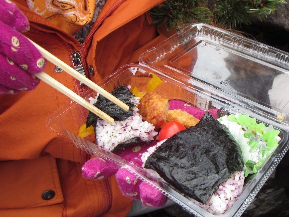 中山展望台は風が強く、 岩陰で昼食をとったが 寒い寒い。