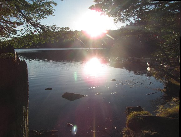 ![]() 朝日が眩しい湖畔 |